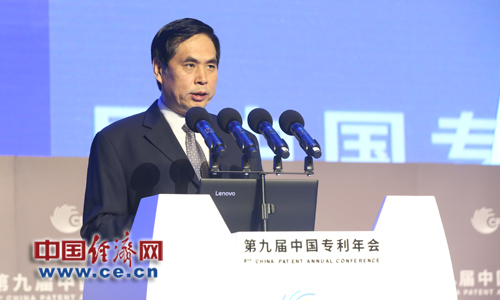 8月30日,第九届中国专利年会在北京召开。图为国家知识产权局局长、党组副书记申长雨致开幕词。经济日报-中国经济网记者张相成/摄
